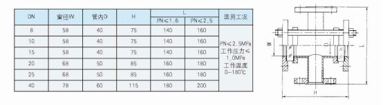 注:分母為擺板式單壓型視鏡。工作壓力≤1.0MPa,工作溫度0-180℃