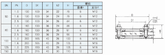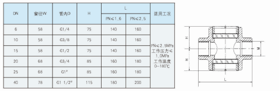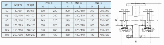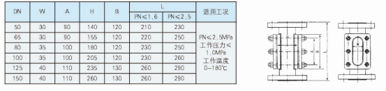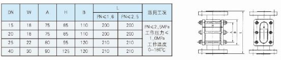 注:PN≤0.6MPa,工作壓力≤0.3MPa,工作溫度≤180℃。